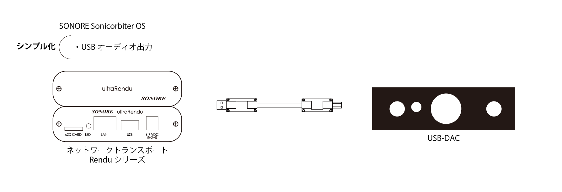 Sonicorbiterはオーディオ再生に関係のない機能を排除し、更にはカーネル(ソフトウェアとハードウェアの通信を司る部分)からチューニングすることにより、オーディオ再生に関係する諸機能:音源ファイルの受信、音楽ストリームデータの再生、USB-DAC出力の品質を汎用OSとは比較にならないほど飛躍的に高性能化させました。また、高性能化させることにより、処理能力の要求は低く抑えられ、ハードウェアのシンプル化に繋がるのです。