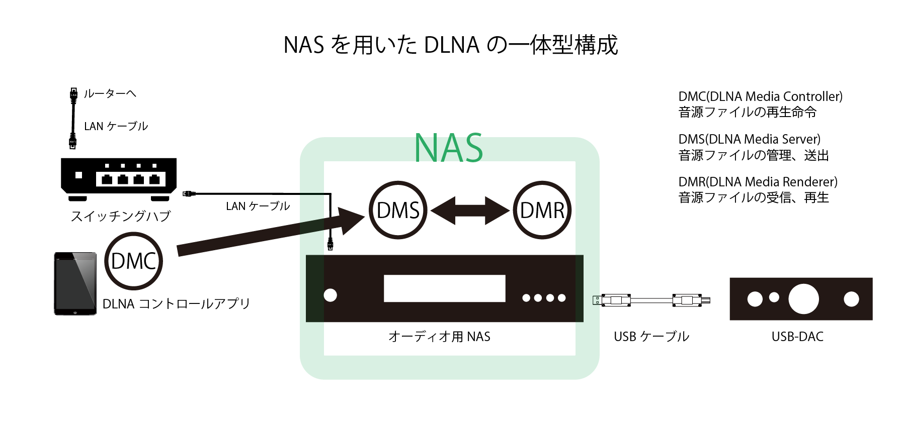 ネットワークに接続、音源ファイルを受信、音楽ストリームデータを再生するオーディオ機器の役割を明確に定義するために、新たにネットワーク・アタッチト・レシーバー(NAR)と名付けました。