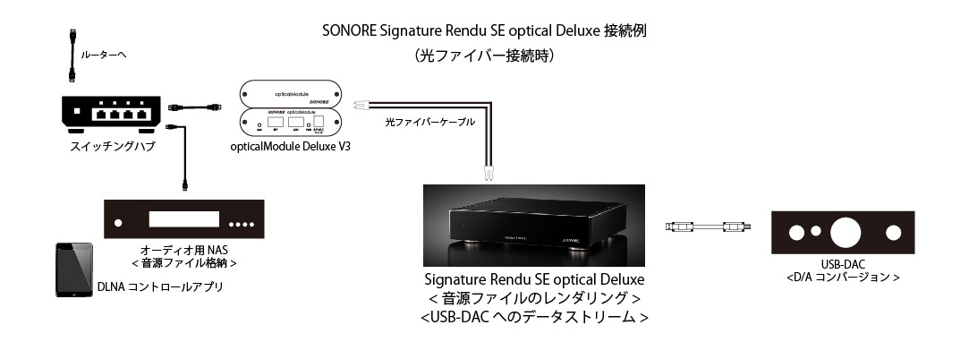 Signature Rendu SE optical Deluxeは独自OS=Sonicorbiterを搭載する同社のRenduシリーズの中でフラッグシップに位置します。前機種Signature Rendu SE opticalから全面的に回路を刷新しました。Signature Rendu SE optical Deluxeの主な特徴は以下の通りです。
