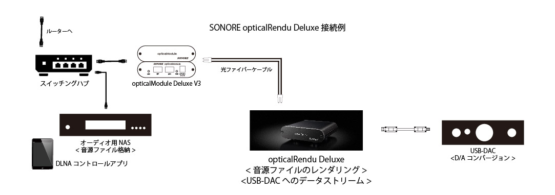 opticalRendu Deluxeは独自OS=Sonicorbiterを搭載する同社のRenduシリーズの中では、光アイソレーションに対応した中核モデルです。前機種opticalRenduから全面的に回路を刷新しました。opticalRendu Deluxeの主な特徴は以下の通りです。